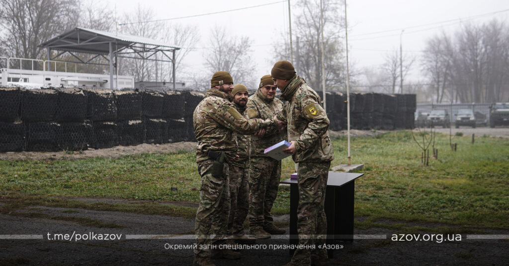 3 листопада під час ранкового шикування на всіх гарнізонах «Азову» воїни полку отримали цінні подарунки та подяки від командира підрозділу за сумлінне виконання службово-бойових завдань, зразкову дисципліну, високий професіоналізм та захист територіальної цілісності.