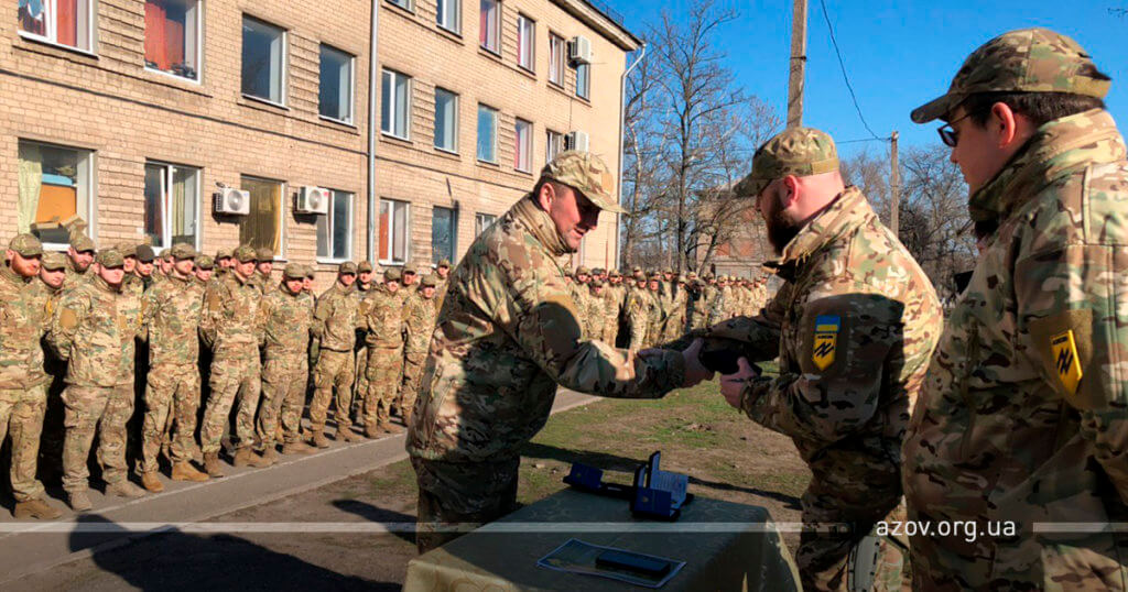 17 березня на ранковому шикуванні на маріупольському гарнізоні полку «Азов» відбулося урочисте нагородження бійців першого батальйону підрозділу з нагоди Дня добровольця та за сумлінне і бездоганне служіння українському народу.