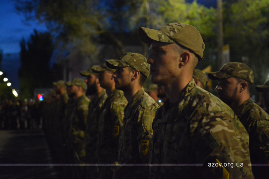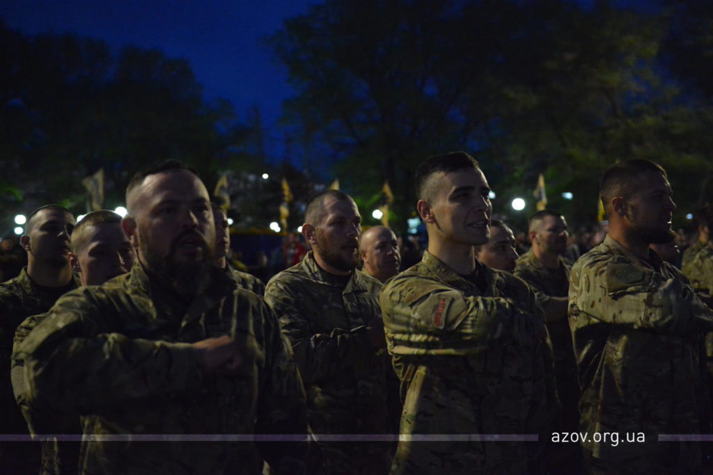 О 20:30 розпочалась офіційна частина заходу. Особовий склад підрозділу вишикувався перед сценою та прочитав Молитву українського націоналіста. Після цього до присутніх звернулись гості дійства, завдяки чиїм зусиллям «Азов» в 2014 році пройшов своє становлення саме в Бердянську.