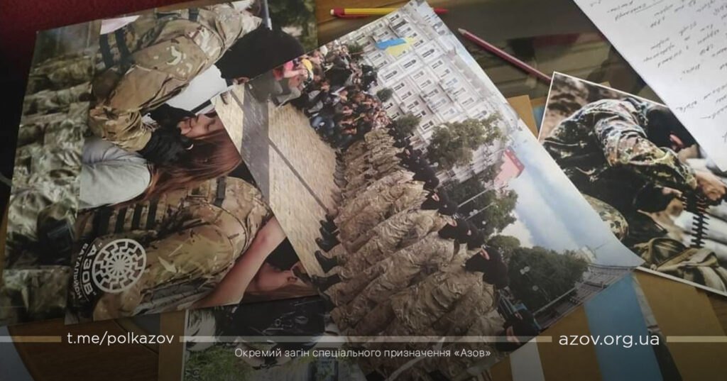Серед 30 предметів, зокрема, бойовий прапор полку «Азов», карта місцевості з позначеними бойовими позиціями, бронежилети, фотографії та інші пам’ятні речі з фронту.