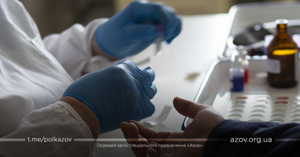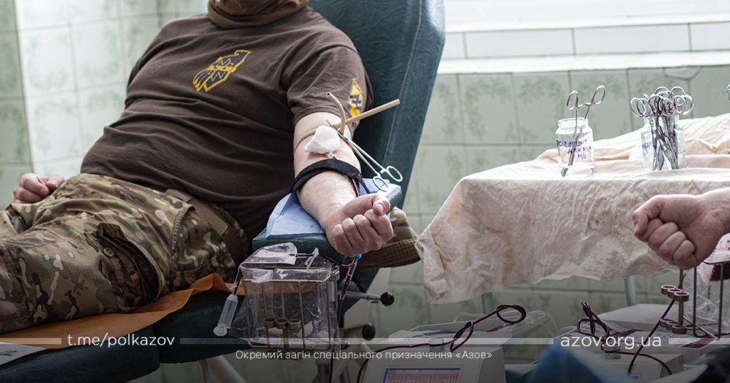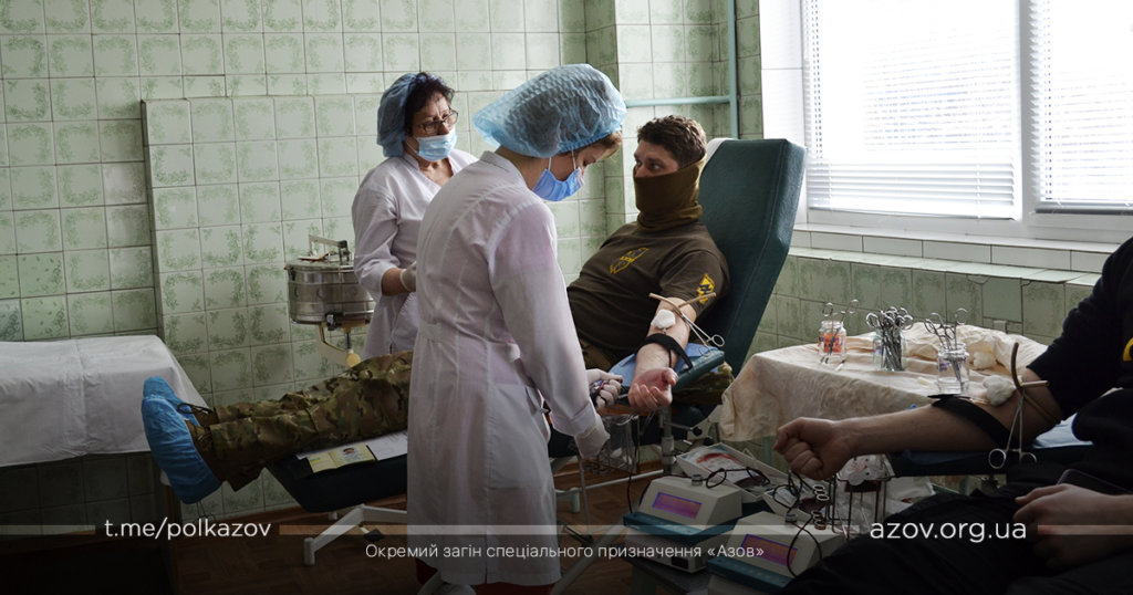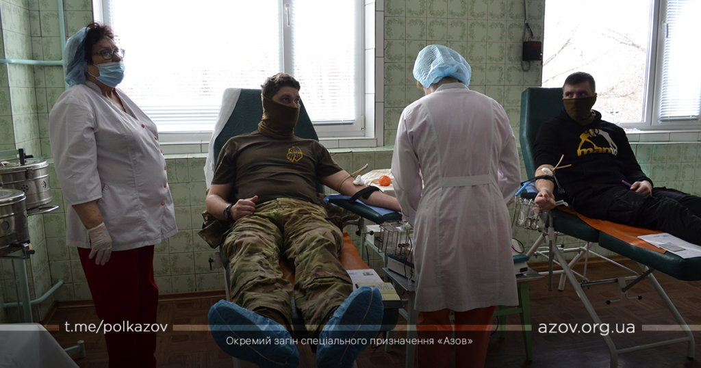 Бійці полку «Азов» вже не вперше беруть участь у благодійних заходах зі здачі крові. 18 лютого у Маріупольській станції переливання всі охочі азовці (а таких виявилося немало) отримали змогу стати донорами та подарувати шанс на порятунок усім, хто цього потребує. Перед донацією бійці пройшли обов’язкові етапи – реєстрацію, медичні обстеження тощо – та отримали допуски.