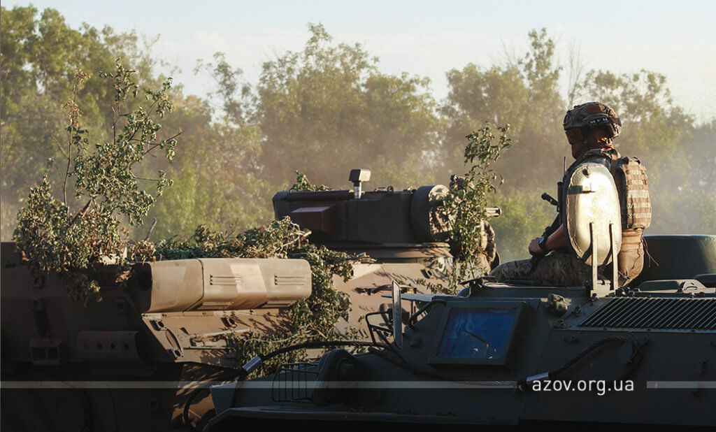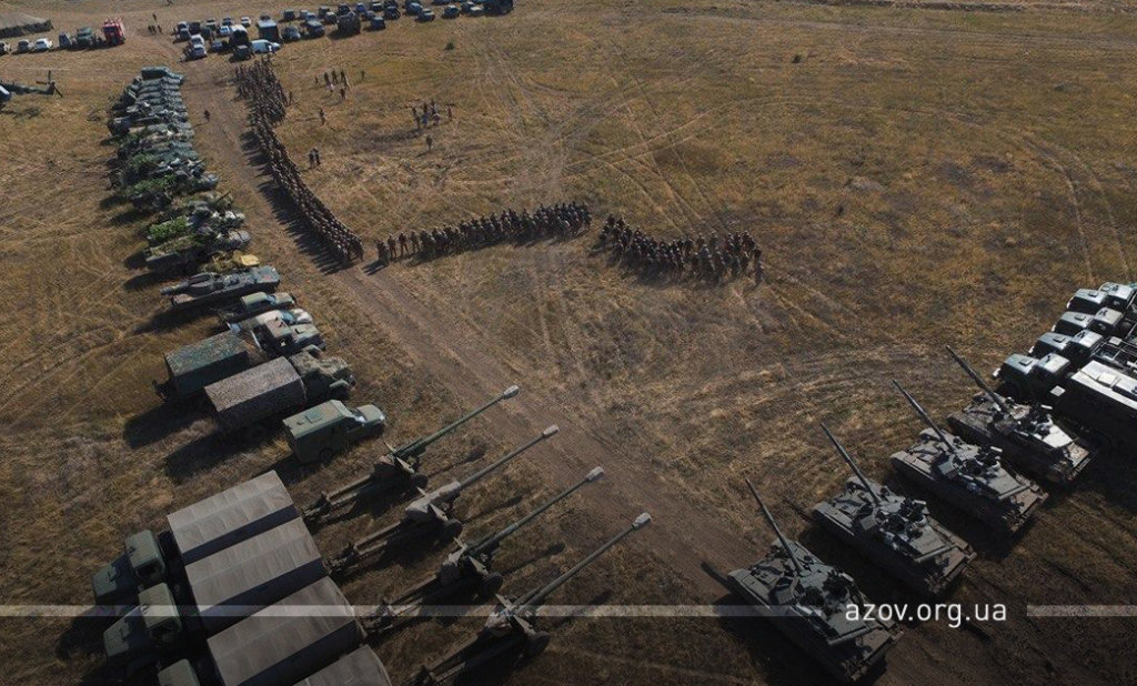 Командир полку «Азов» капітан Денис Прокопенко під час шикування особового складу по завершенню маневру подякував командуванню Об‘єднаних сил за надану змогу взяти участь у цих навчаннях та всім іншим підрозділам, які сьогодні працювали в інтересах батальйонної тактичної групи «Азов», а також сказав наступне: