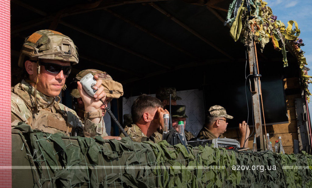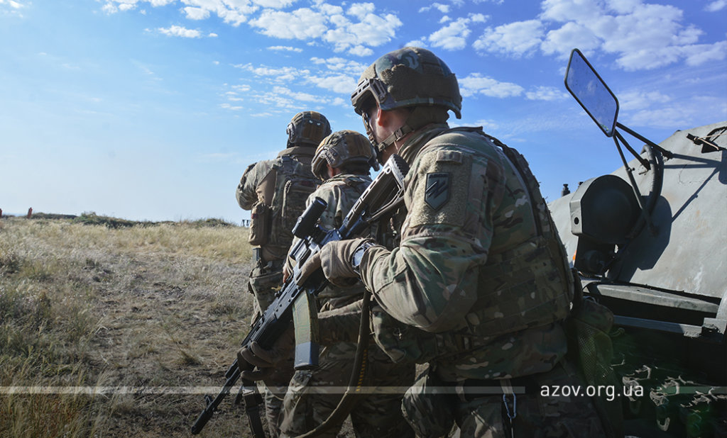 20 серпня на військовому полігоні «Урзуф» відбулися масштабні військові навчання з бойовою стрільбою за участі підрозділів Національної гвардії та Збройних сил України. Полк «Азов», особовий склад якого на час навчань був представлений у складі батальйонної тактичної групи «Азов», став основною одиницею загальновійськового резерву, залученою до навчань. БТГр «Азову» склали дві піхотні роти полку, танковий підрозділ, снайперська група, групи розвідки, інженерно-саперне відділення, мінометники, артилеристи, бійці зенітного ракетного підрозділу та інші сили. Вперше на навчаннях такого рівня була продемонстрована майстерність азовців у справі безпарашутного десантування, здійсненого з кабіни Мі-8, що на навчаннях представив військову авіацію спільно з екіпажами Су-25. Азовці продемонстрували професіоналізм надвисокого рівня та підтвердили готовність свого підрозділу якісно виконувати завдання за призначенням на передовій.