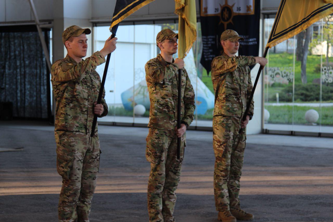 Розпочалась церемонія із занесення прапорів школи та полку АЗОВ, після чого прозвучав гімн України, який був відтворений у повній версії. Командир Військової школи друг Кірт зазначив, що саме така версія, на його думку, є більш правильною. «Кожен наш захід буде починатись з такої версії гімну, – сказав друг Кірт. – Саме Національного гімну, який повністю відображає всю жагу та волю до здобуття Української Незалежної Соборної Держави».