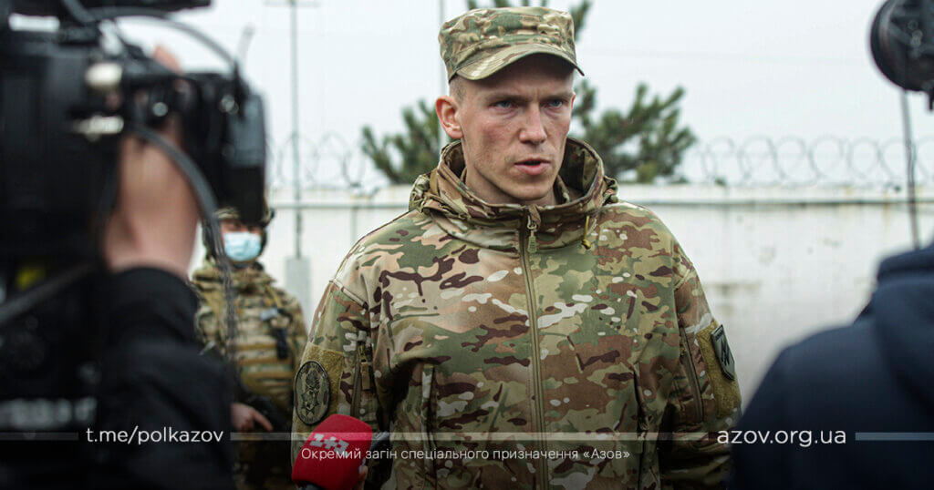 «Полк «Азов» на даний час перебуває у підвищеній бойовій готовності, у всього особового складу бойовий настрій. У будь-який момент ми готові дати гідну відповідь збройній агресії з боку Л/ДНР і Російської Федерації. Реакція будь-яку провокацію буде миттєвою. Ми – військовий підрозділ, наше завдання – не допустити того, що в нас відбулося 2014 року. Ми будемо боротися до кінця за звільнення тимчасово окупованих територій, за звільнення Кримського півострова і свій борг ми виконаємо до переможного кінця».