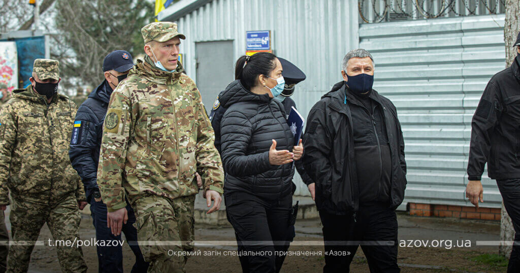 19 квітня відбулася робоча поїздка Міністра внутрішніх справ України Арсена Авакова до Донецької області. Під час поїздки було проведено інспекційну перевірку на базі полку «Азов».