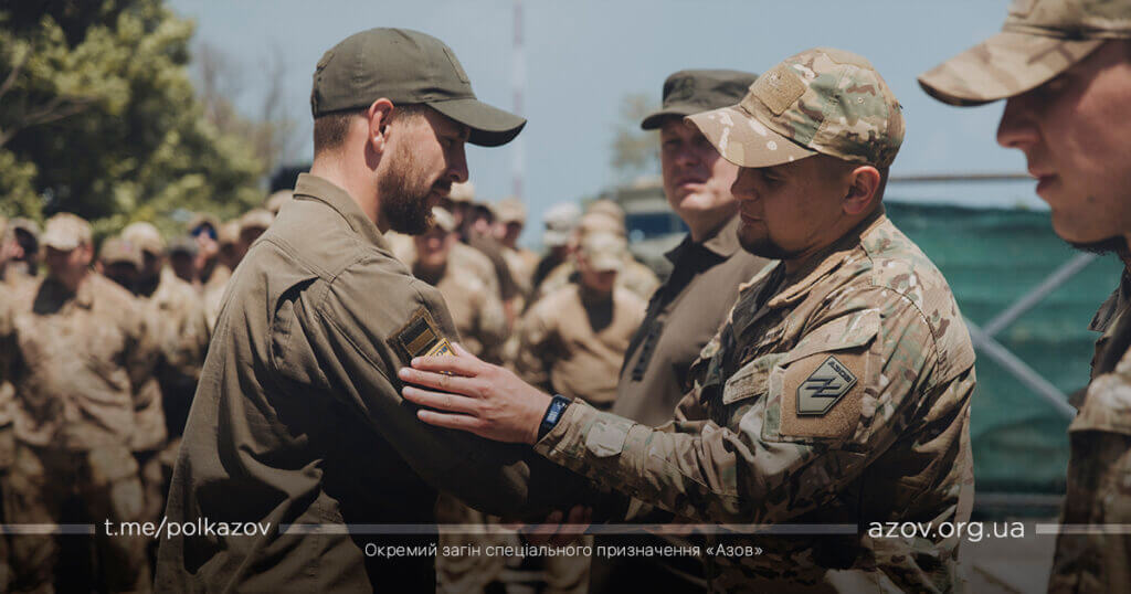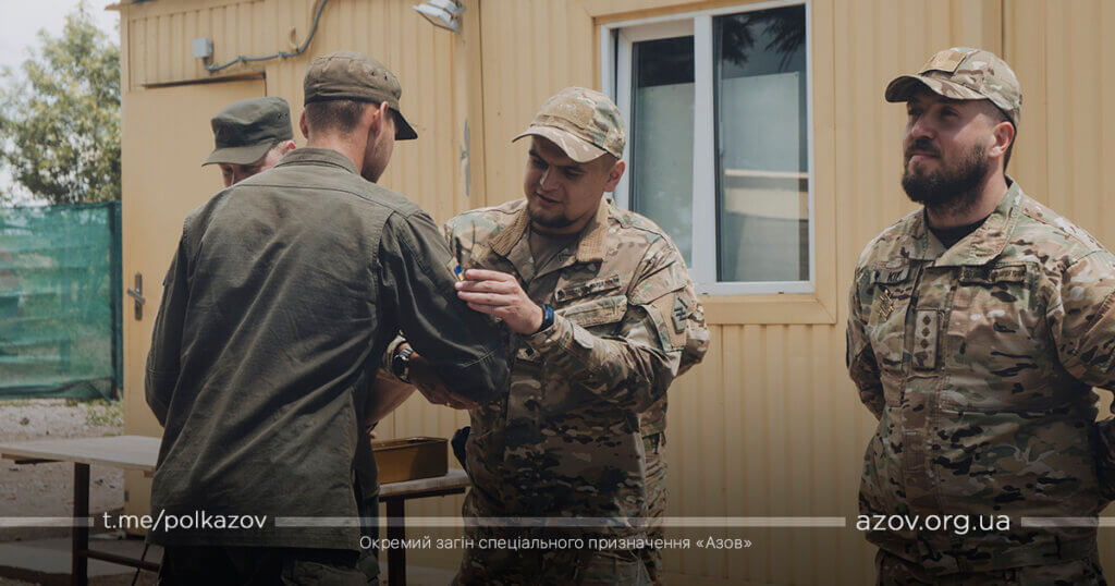 ТВО командира полку «Азов» друг Гоголь під час вручення шевронів привітав новоспечених азовців з визначним днем та подоланням першої сходинки у своїй військовій кар’єрі: