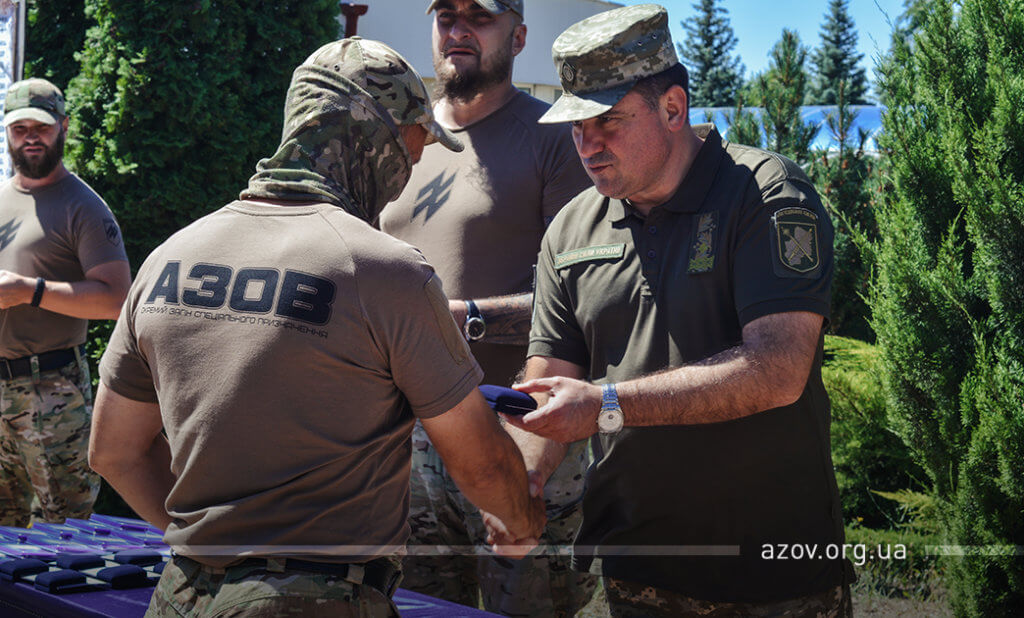 9 липня на гарнізоні «Азову» відбулось урочисте нагородження близько 60-ти бійців підрозділу. Відзнаки особовому складу вручив заступник командувача Об’єднаних сил генерал-майор Віктор Ганущак.