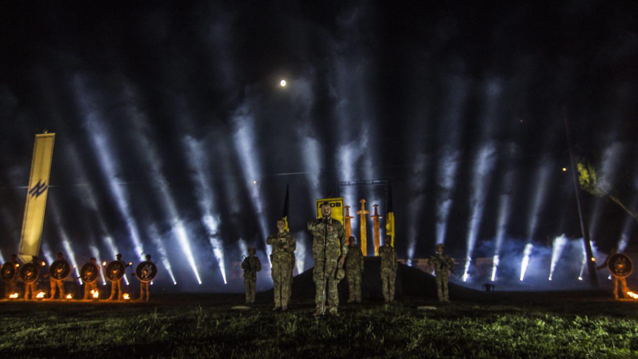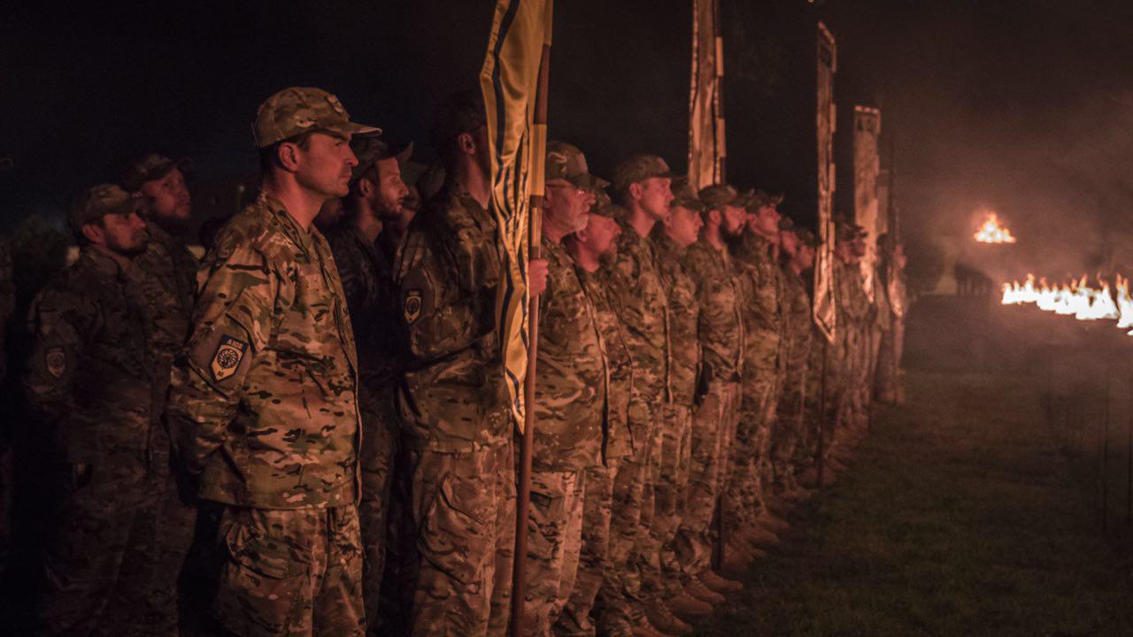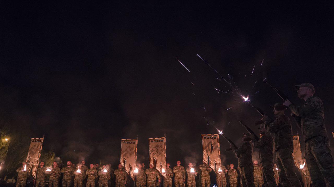 Розпочалася церемонія прочитанням Молитви українського націоналіста. Командир полку друг Редіс відкрив церемонію вшанування наступною промовою: “Сьогодні ми вшановуємо пам’ять загиблих воїнів, славетних синів України, які лишились вірні Ідеї до кінця. Далеко не кожному з нас випаде честь загинути в бою у боротьбі за рідну землю. Це дійсно героїчний вчинок, притаманний найхоробрішим. На жаль, через об’єктивні обставини сьогодні на нашому заході відсутній перший командир АЗОВу Андрій Білецький. Але подумки він з нами та просив наголосити на такому: головне – лишатись вірними нашим загиблим побратимам, доробити те, за що вони боролись, та зробити так, щоб їхні смерті не були марними, відвоювати наші землі, відтворити, відновити і створити нову могутню державу. Слава Нації!”