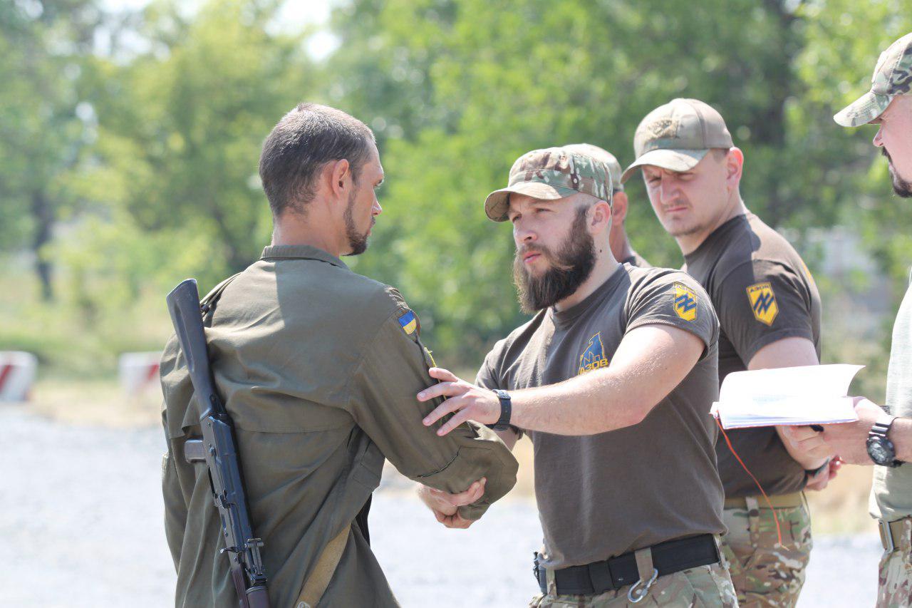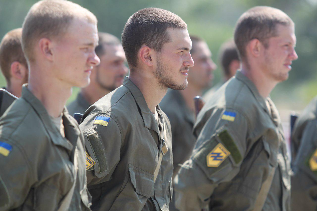 24 липня рекрути, які пройшли курс молодого бійця, отримали азовські шеврони з рук командира полку АЗОВ друга Мосе.