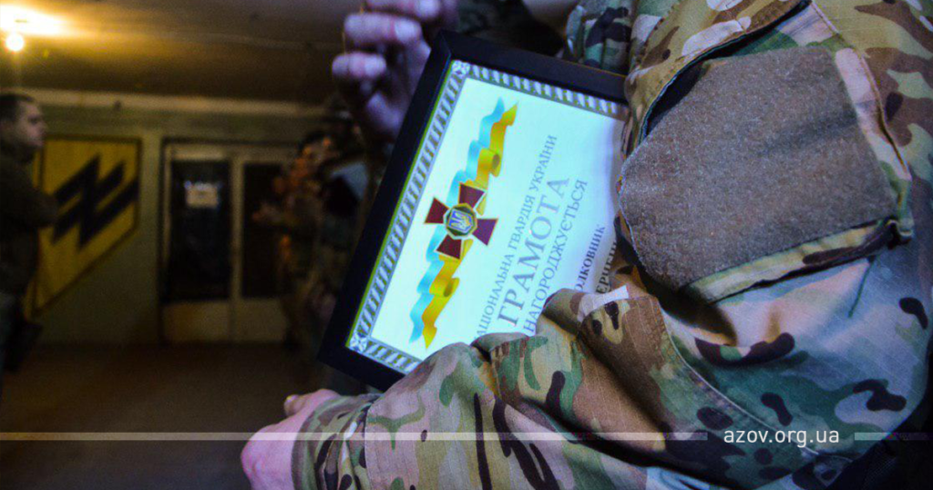 Під час заходу було вручено понад 40 нагород за бойові заслуги, серед яких відомчі нагороди Національної гвардії, почесні грамоти Верховної Ради, нагрудні знаки та медалі. Загалом за три місяці участі бійців полку у запеклій боротьбі на «нулі» азовцям було вручено близько 100 почесних нагород. Боротьба проти окупанта триває, і надалі активне протистояння ворогу з боку полку «Азов» лише набиратиме обертів.
