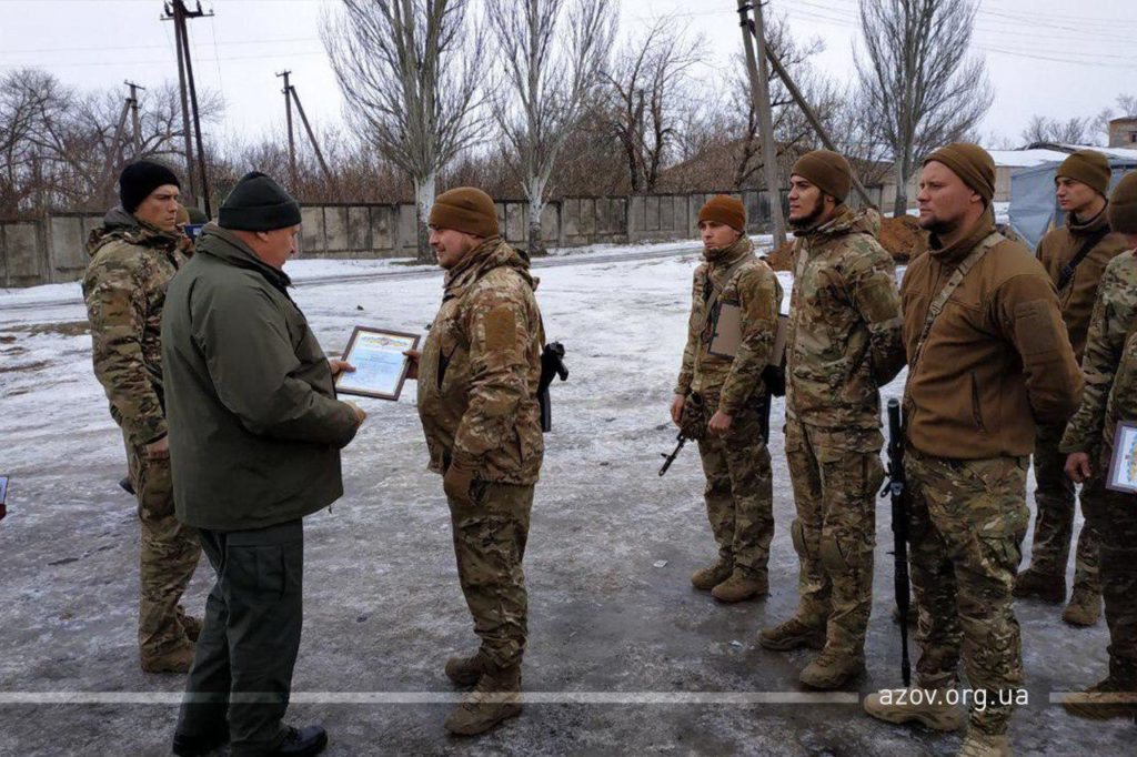 Бійці полку «Азов» на передовій за дуже короткий час показали чимало результатів. За останній тиждень це вже друге нагородження наших бійців за сумлінне та професійне виконання обов’язків. Нагадаємо, про повернення «Азову» на передову було повідомлено зовсім нещодавно, 1 лютого. Ми продовжуємо стояти на першій лінії оборони та будемо і надалі безжально громити живу силу та техніку проросійських терористів.