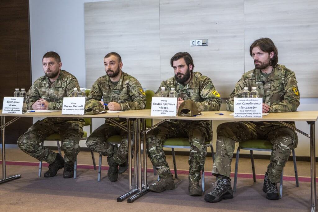 6 жовтня відбулась онлайн-пресконференція командирів Окремого загону спеціального призначення «Азов» Національної гвардії України (полк АЗОВ), присвячена актуальній ситуації з приводу повернення полонених захисників Азовсталі та процесу реабілітації звільнених азовців. В заході взяли участь виконуючий обов’язки командира полку, майор Микита Надточій; перший заступник командира полку, начальник штабу, майор Богдан Кротевич; заступник командира з тилового забезпечення, капітан Іван Ігнатьєв; т.в.о. заступника командира полку по роботі з особовим складом, молодший лейтенант Ілля Самойленко.