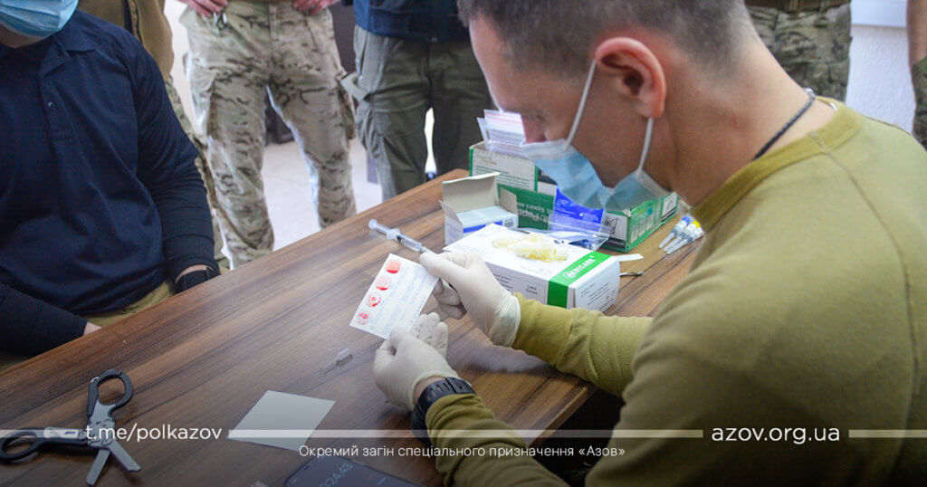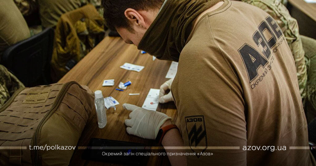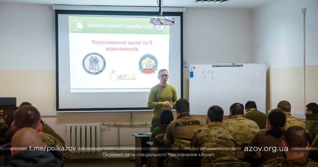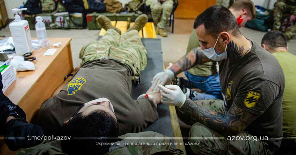 На гарнізоні полку «Азов» пройшов унікальний захід. Вперше в історії підрозділу відбулися збори парамедиків, на яких навчали застосовувати цільну кров на догоспітальному етапі в польових умовах. Для проведення спеціалізованого семінару було запрошено доктора медичних наук, доцента кафедри медицини катастроф та військової медицини Дніпропетровської медичної академії, офіційно сертифікованого досвідченого інструктора з курсу ТССС Дениса Суркова та його команду.