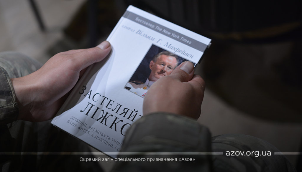 Також під час заходу командир полку подарував бійцям мотиваційні книжки американського адмірала Вільяма Макрейвена «Застеляйте ліжко», які, на думку командира, неодмінно стануть в нагоді на бойовому шляху азовців та допоможуть знайти правильні слова під час роботи з особовим складом, щоб направити їх на істинні життєві орієнтири.