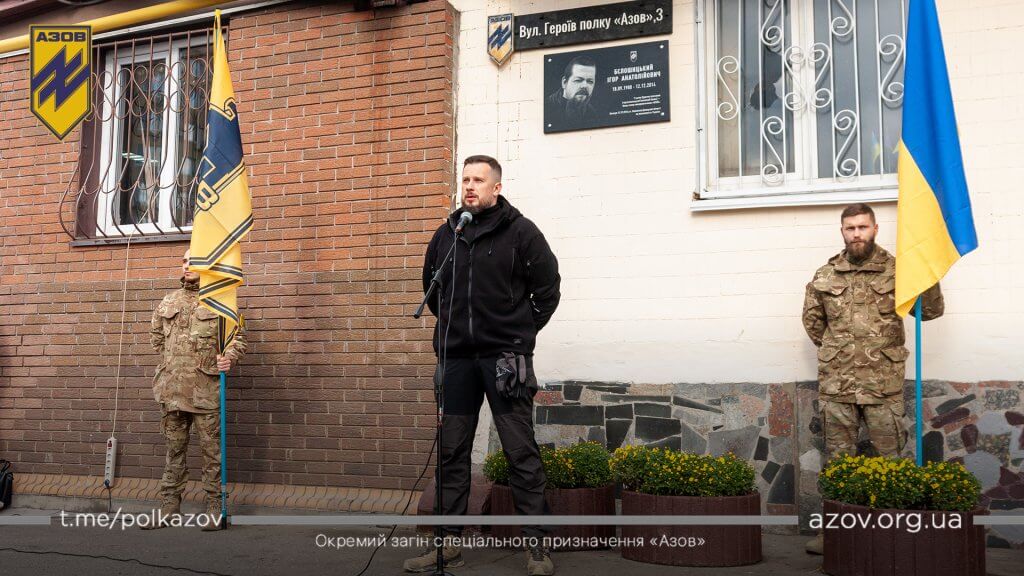 26 жовтня відбулась урочиста подія з приводу перейменування вулиці Маршала Малиновського у вулицю Героїв полку АЗОВ. У заході взяли участь перший заступник командира полку ОЗСП «Азов», начальник штабу, майор Богдан Кротевич, заступник командира з тилового забезпечення, капітан Іван Ігнатьєв, засновник і перший командир полку Андрій Білецький та третій командир полку Максим Жорін. До церемонії долучилися представники Київської міської ради та Оболонської районної державної адміністрації.