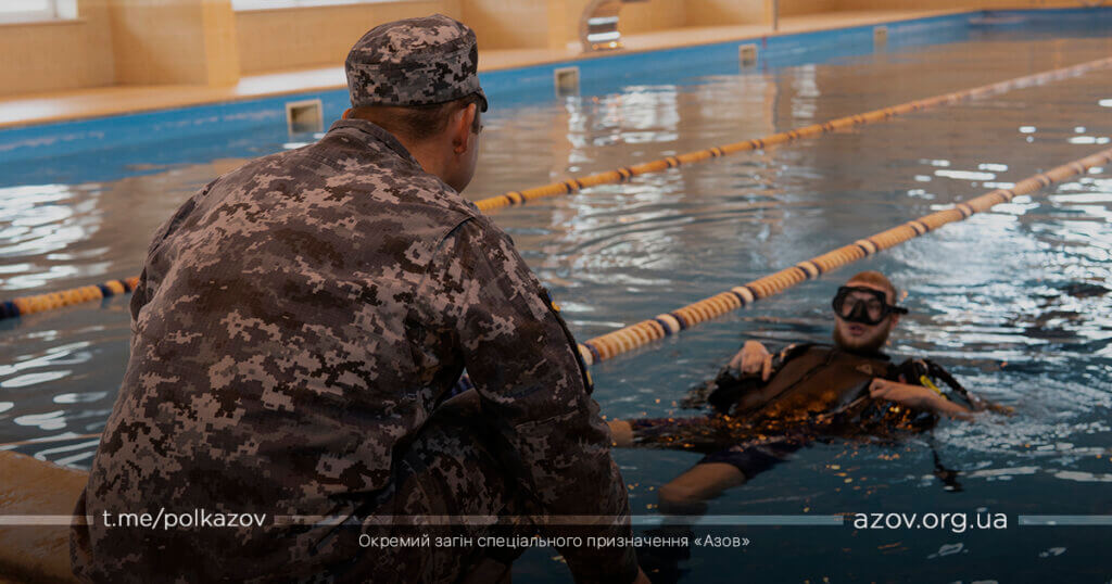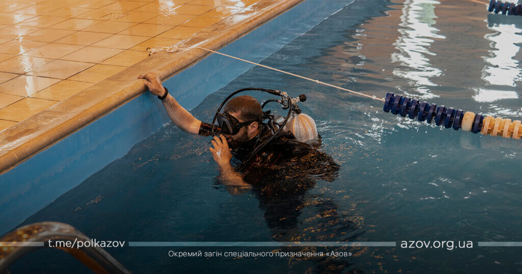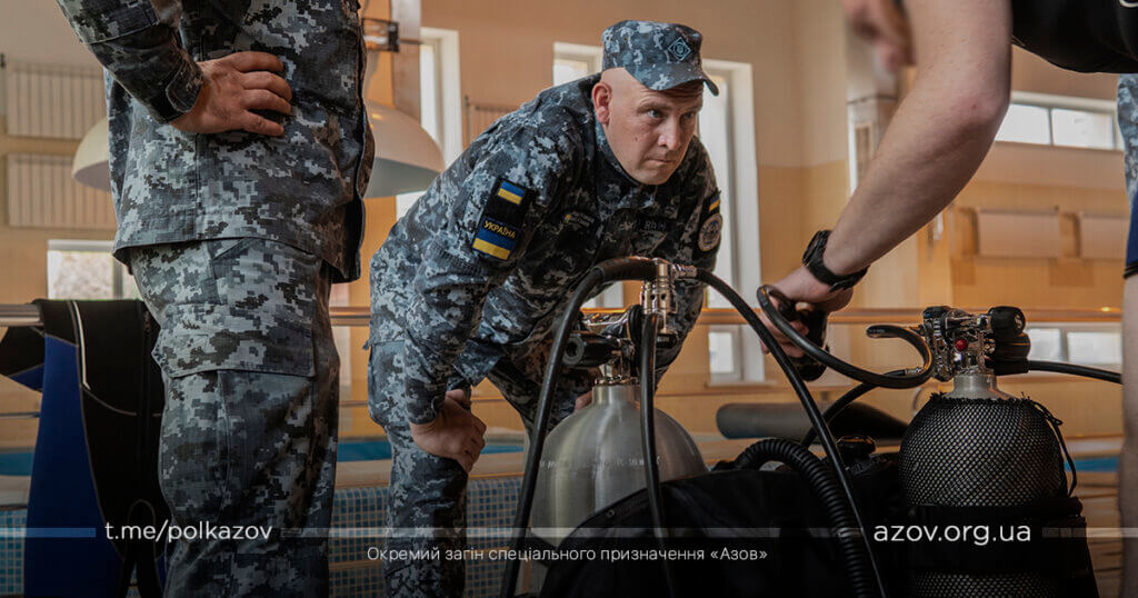 Сьогодні на базі полку «Азов» стартували спільні навчання фахівців-водолазів, у яких беруть участь водолази-розвідники підрозділу та військові Маріупольського загону морської охорони. Перший етап занять проходитиме в басейні, де проводиться покроковий тренінг навичок, необхідних для роботи у відкритому морі. Другий – в Азовському морі в умовах, максимально наближених до бойових, з практичним застосуванням набутих під час тренінгу навичок.