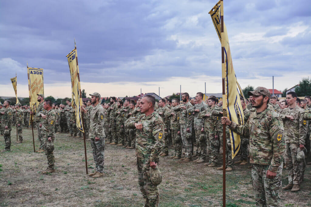 Нагороди азовцям вручив командир полку «Азов» друг Редіс. Перед початком церемонії він звернувся до особового складу полку:
