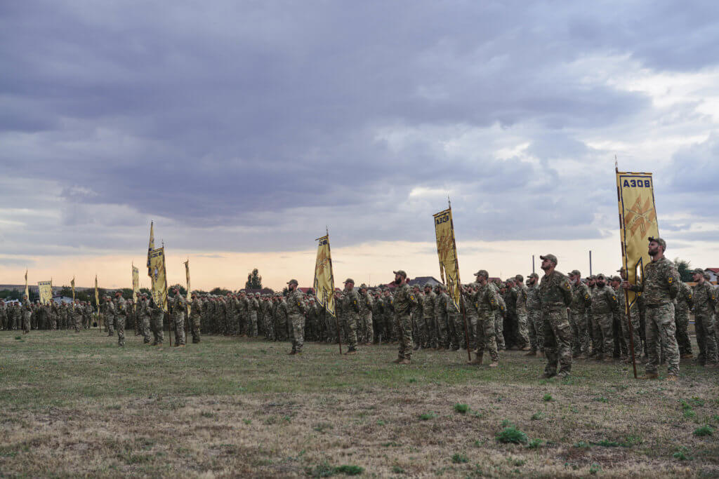 Відбулася урочиста церемонія нагородження особового складу «Азову», який відзначився у роботі на передовій в районі Світлодарської дуги. Захід відбувся на знаковому для всіх азовців місці – площі перед одним із гарнізонів полку, де стоїть легендарний азовський курган з трьома мечами.