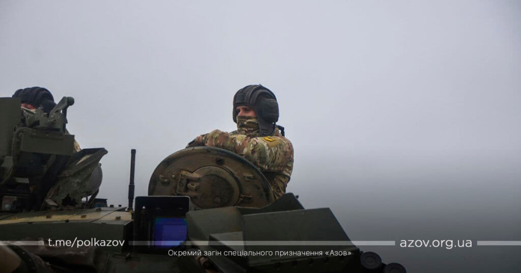 Командир танкістів на псевдо Чуп розповідає: «Сьогодні тут проходить підготовку молоде поповнення танкової роти, яких «Азов» навчає власними силами. Зовсім нещодавно в танковий підрозділ прийшло багато нових бійців, так звана «молода кров», тож в першу чергу ми проходимо вправи для навідників-новачків, а більш досвідчені повторюють вже засвоєний матеріал».